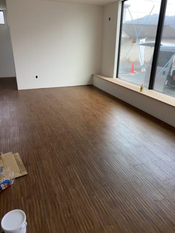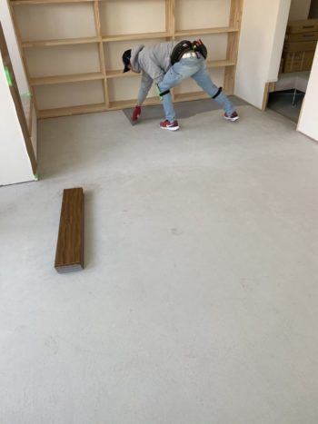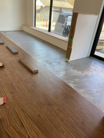 少し接着剤を乾かしたらウッドタイルタイルを貼っていきます❗️